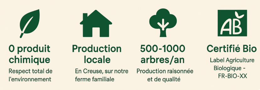 Située au cœur du Limousin, entre Guéret, Limoges, La Souterraine et Eymoutiers, la pépinière Les Racines Carrées cultive et produit des arbres fruitiers biologiques, rustiques, locaux et adaptés au climat de la région. Nous sommes deux pépiniéristes passionnés, engagés pour une agriculture respectueuse de la terre et du vivant.