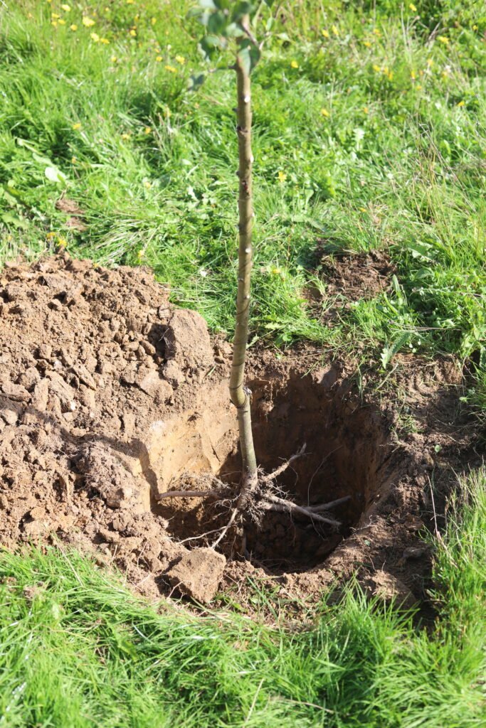 Choisir l’emplacement : lieu idéalement exposé et offrant suffisamment d’espace pour le développement futur de l’arbre.