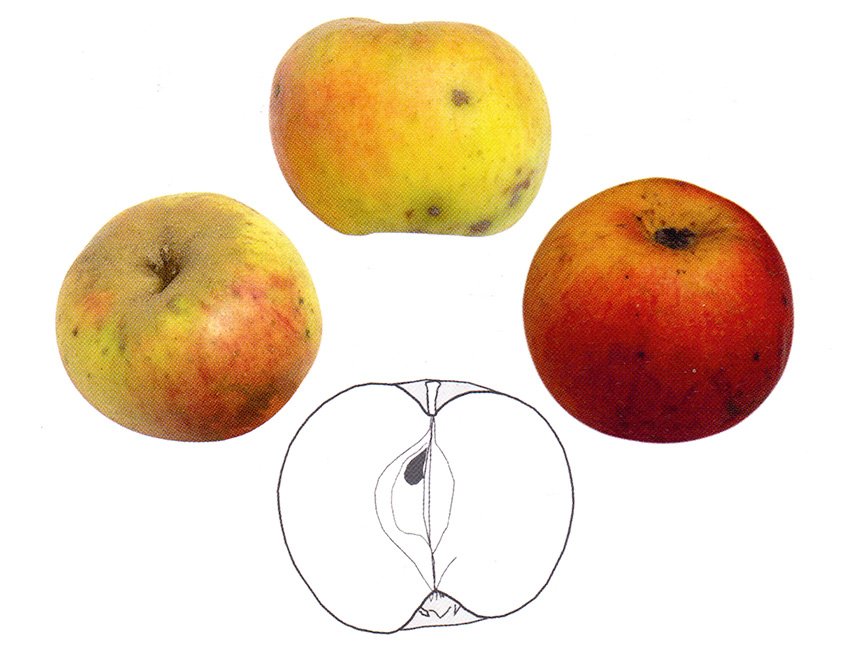 Variété régionale originaire du Limousin, traditionnellement cultivée et très appréciée pour sa rusticité. Ses fruits sont de calibre moyen à gros, jaune-vert largement colorés de rouge vif. Sa chair blanche, fine, croquante, acidulée et bien parfumée offre un excellent équilibre entre sucre et acidité.